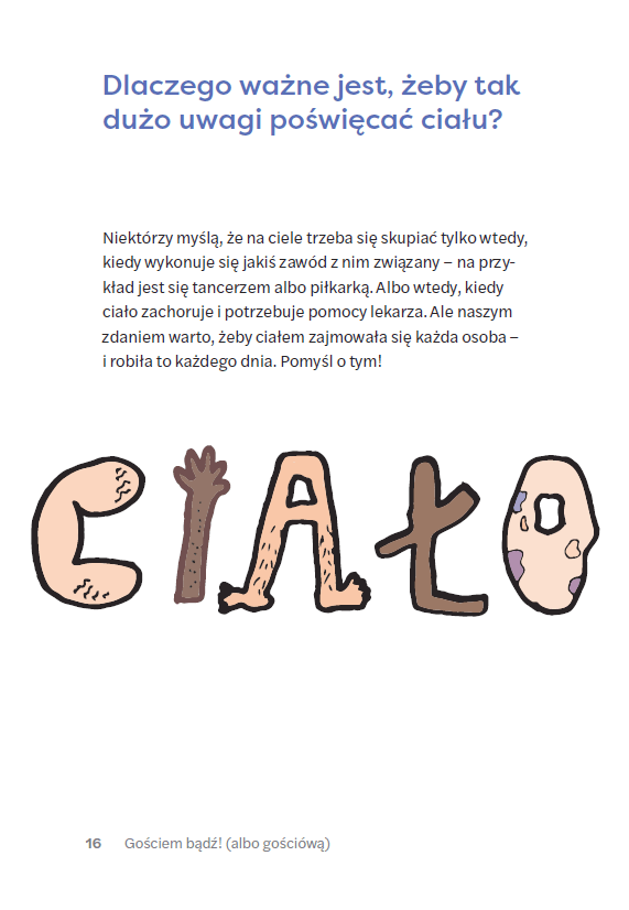 - może stanowić punkt wyjścia do przeprowadzenia lekcji czy warsztatu na temat emocji związanych z ciałem: kompleksów, hejtu, tematu różnorodności,
