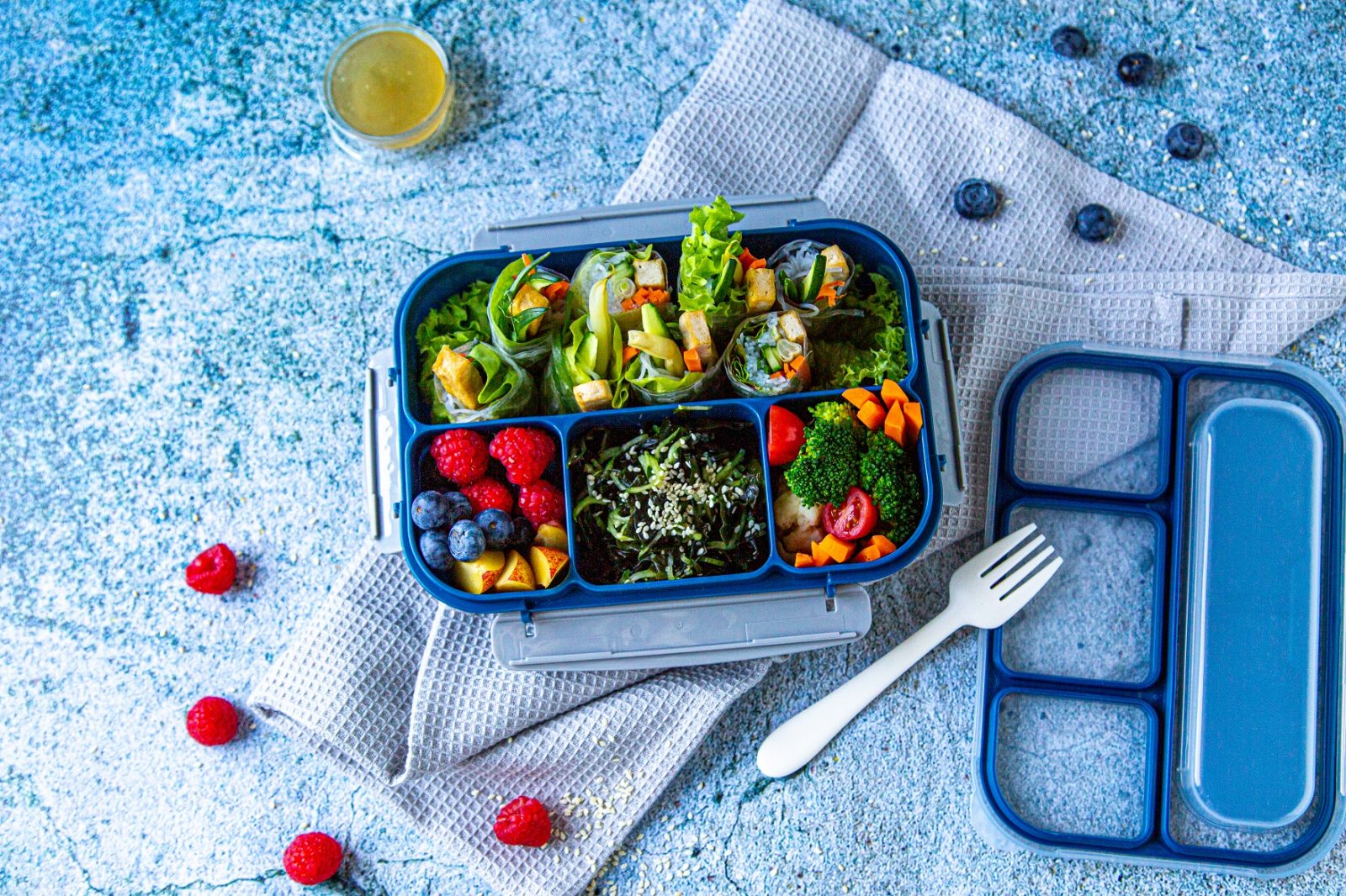 Wszystkie składniki bento poukładaj w oddzielnych przegródkach i ciesz się kolorowym oraz